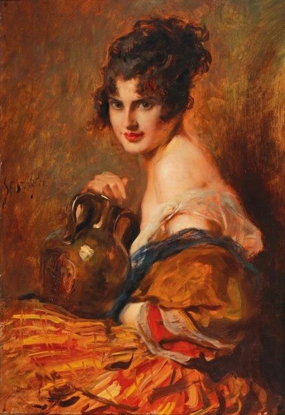 Emile Vernon painted 'Style and Grace' with oil on canvas, a very traditional medium, but the image also speaks to the changing social status of women during the late 19th and early 20th centuries. Consider the materiality of the scene: the delicate porcelain teaware, the soft fabric of the gloves, the ornate details of her fashionable attire. All of this is rendered with precise brushwork. Vernon was clearly skilled in capturing the textures and surfaces of these objects. It's not just about showing wealth, it's also about celebrating the increasing access to consumer goods and leisure activities, especially for middle-class women. The way the tea set is painted, with its intricate patterns and glossy surface, reflects the rise of industrial production and global trade that made such luxury items more widely available. But it also represents a certain lifestyle, and it reinforces the idea of women as consumers and homemakers, not laborers or makers themselves. So, when we look at paintings like 'Style and Grace', it's important to think about how materials, making, and social context come together to create meaning, challenging our understanding of art history and the changing role of women in society.