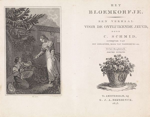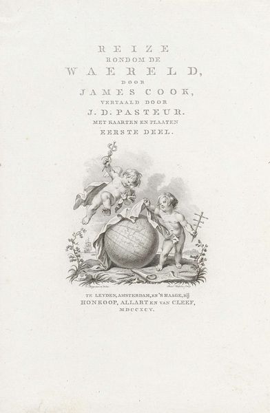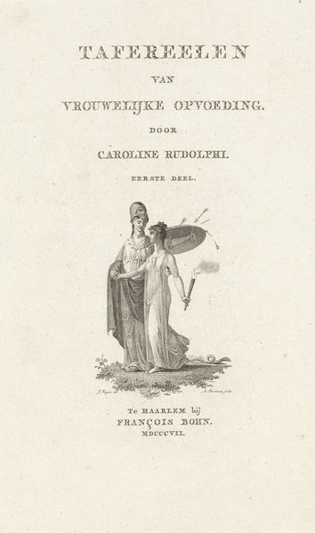 Curator: This engraving by Reinier Vinkeles serves as the title page for A. Pz. Loosjes' book, 'De Vrouw in de Vier Tijdperken Haars Levens', published in 1809. Editor: My first impression is of ethereal lightness; the pale tones and wispy lines almost make it seem to float on the page. It's remarkably restrained for an allegorical work. Curator: Absolutely. It’s deeply rooted in Neoclassicism, reflecting a desire for order and reason. The four female figures symbolize the different ages of a woman’s life, positioned almost architecturally, their placement is carefully considered and symbolically dense. Editor: Right, and considering the printing process of the time, I wonder about the engraver’s tools—the burin, the metal plate, and the immense skill required to achieve this level of detail with such unforgiving materials. You have to appreciate the physical labor and mastery involved, transforming metal into something seemingly weightless. Curator: The imagery holds echoes of classical myth, but reframes it within a contemporary context. The woman holding the hourglass representing old age and another seated with an anchor suggests steadfastness during her adulthood. Notice, even the cherubic figure embodies youth with musical flute, it suggests innocence but with controlled exuberance, reflective of that era's focus on refined emotions. Editor: Yes, that precision reflects the social constraints on women at the time. It would be interesting to know more about the specific societal expectations for women Loosjes outlined in his book. These aren't just timeless symbols; they're rooted in the social and economic realities of early 19th-century Dutch society. How were the ideas in that book materialized? Curator: It’s a subtle piece, but powerful in its distillation of complex ideas into accessible imagery. The artwork operates within this established visual language but carries its own distinctive cultural memory of gender roles. Editor: A print like this reveals not just the artistic choices of Vinkeles, but the very process by which ideas circulated and were consumed in that era. It gives one a view into the materials and production practices that shaped the public conversation around identity.