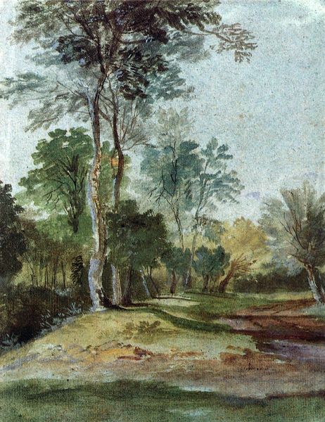 Editor: So, here we have Pyotr Konchalovsky’s "In the Woods," an oil painting from 1945. It's overwhelmingly green, kind of shimmering and dreamlike. I get this sense of being utterly immersed in nature. What strikes you when you look at it? Curator: That's a perfect word for it - immersed! I feel as though I could simply walk right into the canvas, and I love the way Konchalovsky manages to give us both a macro and micro view simultaneously. We have the expanse of the forest, but we also can glimpse all the little shifts in light, color and texture under the canopy. It reminds me, strangely enough, of certain kinds of musical compositions - you have a vast, overarching theme, and all these tiny variations that play off of it. What do you think the significance of that lone birch tree might be? Editor: Good question! Maybe it is acting as an invitation to move through into that thicker cluster of trees and that spot of sky. Its verticality opposes all that sprawling, luscious undergrowth. Do you see some traces of human figures too? Curator: Absolutely. Faint brushstrokes suggest perhaps some wanderers, painted with the same attention and intensity as the birches and foliage surrounding them. Maybe Konchalovsky wanted us to see that we are all part of the wood—the painting doesn’t privilege a human gaze but is simply *is* a whole. What’s your take? Editor: It's true. They’re almost swallowed up by the woods! It blurs the line between the viewer and the landscape, or humans and nature in general. That really comes through now. Thanks! Curator: Exactly. Now I see even more nuance in those green shades... wonderful. Thanks for sharing your insightful view with me!