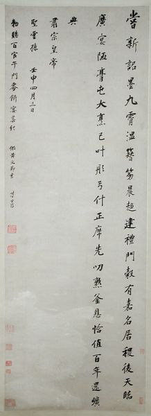 Dong Qichang created this hanging scroll, Poem in Cursive Script, using ink on paper, sometime in the late Ming Dynasty. The work gives us insight into the world of the Chinese literati and the cultural values of the time. Calligraphy in China wasn't just about writing; it was a high art form, a way to express personal cultivation and taste. The cursive script seen here would have been admired for its spontaneity and expressiveness. Dong Qichang was not only a calligrapher but also an art theorist. He advocated for the "literati painting" style, which valued personal expression and amateurism over mere technical skill, subtly critiquing the formal artistic institutions of the time. To truly understand this work, we can delve into texts on Chinese art theory, biographies of the artist, and social histories of the Ming Dynasty. By understanding the social and institutional context, we gain a deeper appreciation for its meaning and significance.