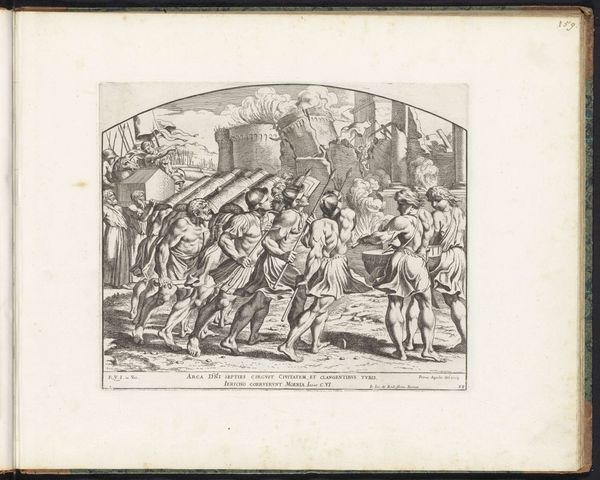 Curator: This engraving, titled "Aanbidding door de herders," or "Adoration of the Shepherds," dates back to 1585 and is attributed to Lambert Lombard. It resides here at the Rijksmuseum. Editor: It strikes me immediately as quite theatrical. The composition, almost like a stage tableau, and the dynamic poses of the figures give it a lot of tension, even if it’s on a very small scale, from what I understand, done on paper. Curator: The theatricality you mention points to the influence of Northern Renaissance sensibilities. Lombard was fascinated by classical art, but here, we see how that inspiration blends with the intricate detail characteristic of the North. The shepherds, for example, aren't just worshipping; they’re bursting into the scene, conveying this urgency that is almost frantic, right? Editor: Exactly, there's a palpable energy, emphasized, I think, by the density of lines. You can almost feel the physical labor of creating all those individual marks, really packed together, which helps model light and shadow. Look at how much darkness exists on the figures as compared to the illuminated child. It makes one think about printmaking workshops and the collaborative effort involved in producing these engravings, because it is rare to have such refined artwork coming from one single person in history, they have many, many pairs of hands to help achieve greatness. Curator: Yes, the contrast created by those dense lines draws our attention to the sacred scene unfolding amidst the relative chaos surrounding it. Notice, too, how Lombard employs symbols. The broken column could signify the transition from the Old Covenant to the New, embodied by the infant Jesus. Then, what would the oxen indicate? Editor: Perhaps a grounding, earthy presence? Their calm presence acts as a counterpoint to the shepherds. I also think this choice may come down to the simple materiality of animal bodies being used by so many artists to model anatomical detail and light-dark contrast. Curator: Possibly. And in many ways, those symbols underscore the transformation, of both a personal and a cosmic order. I had not looked at this imagery with this thought until you began talking. I guess the work is never finished, merely abandoned, as the old saying goes. Editor: Indeed! Examining the artwork through a material lens really opens up how intertwined labor, symbolism, and artistic intentions can be. Thank you for discussing it with me.