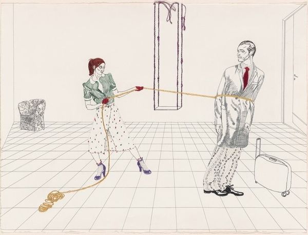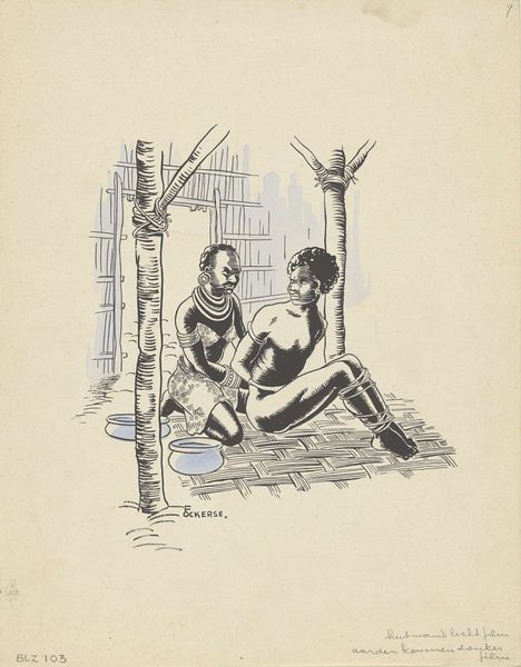 Hans Borrebach created this drawing, titled *Pepita takes a foam shower*, using ink on paper. The simplicity of these materials belies the image's social commentary. The stark black ink defines a domestic scene; a woman enveloped in bubbles, a maid attending the bath. The material's flatness sharpens the contrast between the presumed luxury of the bather and the labor of the attendant. The quick, sure lines suggest a process rooted in mass media illustration, perhaps for advertising. This efficient mode of production mirrors the consumer culture it depicts. The drawing implicates both women in a cycle of consumption and service, rendered with an economy that speaks volumes about the social divisions of its time. The image thus challenges any high-art status, grounding itself in the everyday realities of labor, class, and the visual languages of commerce.