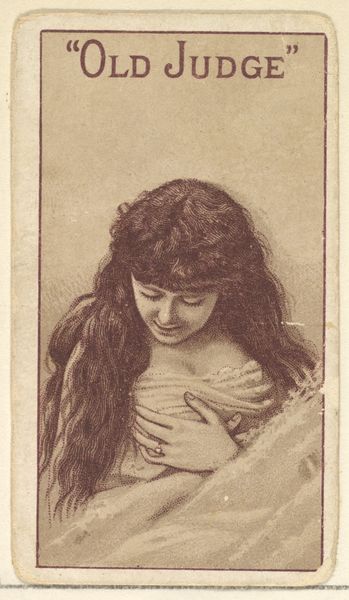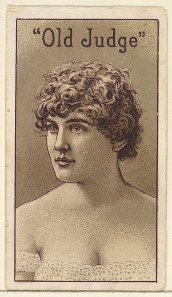 Curator: I find this image so evocative. The expression is soft and yielding, somehow innocent but also knowing. Editor: I agree, there is something so alluring and almost intimate about it, although perhaps a little sad as well. Today we’re looking at "Actress from the Old Judge series (N167) for Old Judge Cigarettes" created around 1886. This drawing or print on toned paper comes from the Goodwin & Company collection and is currently held at The Metropolitan Museum of Art. Curator: A cigarette ad! It's amazing to think of it as advertising. It almost has the feeling of an old master's drawing. Did you know these cards were inserted into cigarette packs as a collectable series? A very different kind of fandom! Editor: Absolutely! That tension between art and advertising is very interesting. The image speaks to celebrity and aspiration, linking a particular vision of beauty and success with the brand being advertised. There is an underlying connection to women as objects of consumption—literal consumption in this case, linking a portrait of an actress to a harmful product, to men's access to it. Curator: I see what you mean. Even her gaze is carefully constructed, a look of distant, dreamlike receptivity as if waiting to be discovered. I notice it's titled "Old Judge," perhaps she's judging us… just a bit. Do you think she had any say in this? Editor: Not likely. It speaks to the period’s societal roles. The female image as something to be bought and sold, just like those cigarettes, with agency completely erased. Also, let's keep in mind that actors were not held in very high regard at this time. They were entertainers, that's all. Their images were at the service of this industry. Curator: I imagine many of the actresses probably didn't receive credit for their contributions and likeness. Looking at the piece purely formally, I adore the looseness of the hair; that feels so real and individual. Editor: Yes, there is definite contrast between that organic freedom and the sharp confines of the card's borders. She, or at least a representation of her, becomes a product. It really shows the way consumer culture encroaches upon all facets of life, doesn't it? Curator: I'm finding that contrast so very compelling! Editor: It makes one reflect on how even simple images can carry multiple layers of historical context. Curator: So true.