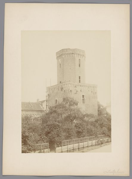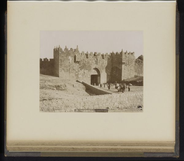 Editor: This albumen print, captured by Fratelli Alinari between 1857 and 1900, portrays the Tomb of Caecilia Metella along the Via Appia near Rome. It evokes a sense of timeless grandeur, even in its somewhat faded state. How do you see this image within the context of its time and subject? Curator: It's interesting to consider this photograph as a document of cultural tourism in the late 19th century. The image flattens what would have been, for many, a pivotal cultural experience, allowing it to become a widely circulated commodity. Note the figures on the road, almost props that enhance the monument's scale, creating a vicarious thrill for the viewer. Why was this particular site so popular, do you think? Editor: Perhaps because it offered a direct connection to the ancient world, to Roman history? Something tangible from a glorious past? Curator: Exactly. And the act of photographing it democratized access to that past. However, it also shaped perceptions. These images helped codify how people "should" see the monument, freezing a particular interpretation in time. It subtly reinforces the dominance of a classical narrative and its influence on the construction of cultural identity. Editor: So, in a way, the photograph becomes another layer of interpretation added to an already historical site? Curator: Precisely. Consider who these images were for, and the narratives they reinforce about empire and legacy. It provokes a reflection on the power of visual media to shape collective memory. Editor: This really underscores the photograph's role beyond a mere record – it's an active participant in shaping historical understanding! Thank you! Curator: A crucial point. Reflecting on the interplay between art, historical perception, and the power of institutions helps to develop a more nuanced engagement with works like these.