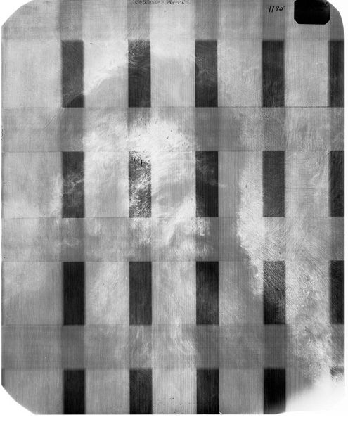 Editor: So, this is an X-radiograph of a self-portrait by Benjamin West at the Harvard Art Museums. It's quite abstract, almost a grid with ghostly shapes underneath. What do you see hidden in this X-ray? Curator: It’s like peering beneath the surface, isn’t it? This isn't just a portrait; it's a record of layers, intentions, revisions. What I find fascinating is how the X-ray reveals the artist's process, the pentimenti. It’s like the painting has secrets, whispered only to those who look closely. Editor: It's incredible to think about what's underneath and what the artist has chosen to hide. Curator: Exactly! The X-ray adds a layer of mystery, of time and artistic choices, transforming the image into something much more profound. I'm left wondering what other secrets lie beneath the surface of other artworks.