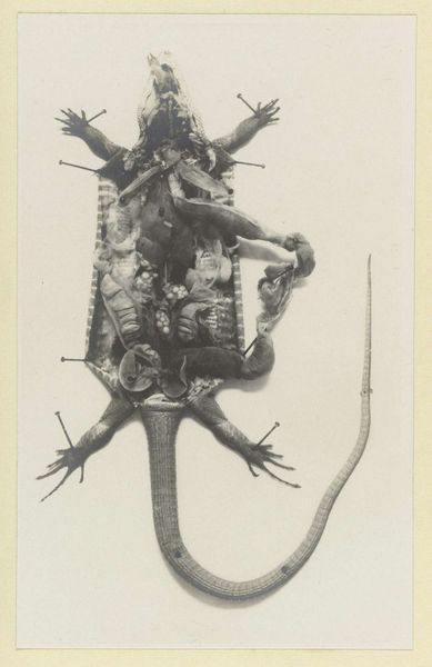 This black and white photograph, titled "Anatomie van een inktvis", was created by Adolphe Louis Donnadieu, using then-innovative photographic processes. Photography has a fascinating history, moving rapidly from a scientific tool to an artistic medium. This image hovers between those worlds. Photography allowed for unprecedented levels of detail. It was a means of capturing and disseminating visual information. This image is a scientific exploration of the anatomy of an octopus, likely used for educational purposes. Consider the labor involved in producing this image. First, catching and preparing the octopus. Then the meticulous work in the darkroom to develop this print, an alternative to slow and laborious drawing and printing. In this way, the photograph becomes a type of visual knowledge, widely accessible in ways that a unique drawing never could be. This photograph challenges distinctions between scientific documentation and art, reminding us of the inherent human labor in every image we see.