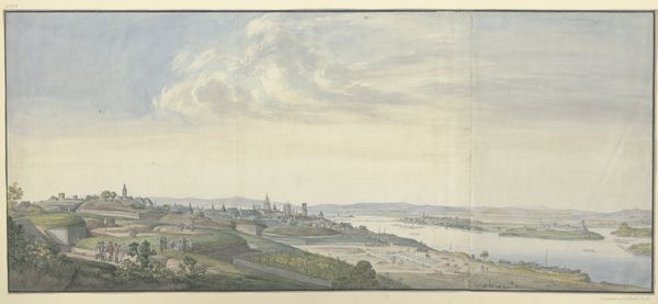 This delicate drawing of Rome, with houses and a church by a river, was created by Jens Petersen Lund. The vista is rendered with pale washes and fine pen lines, creating a subdued atmosphere. The composition is structured around the horizontal sweep of the river, with the architectural forms of the city rising gently above. Notice how Lund uses the texture of the paper to suggest light. The lines of the buildings are soft and uneven, reflecting the artist's engagement with classical architecture. The drawing invites us to consider how Rome was perceived in the 18th century, not as a collection of monuments, but as a living city with a rich texture. Lund challenges the notion of Rome as a static historical site by emphasizing its organic nature. The soft lines and delicate washes reinforce this sense of an evolving urban space. This work prompts us to think about how we assign value to historical places and how our perceptions can shift over time.