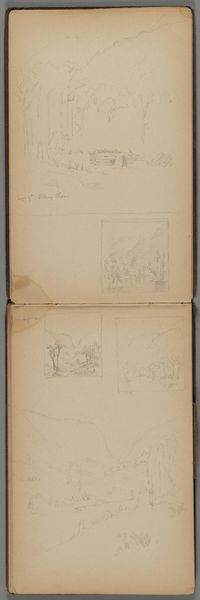 Curator: This is Sanford Robinson Gifford's "Landscape with Rocky Stream; verso: Landscape with Log Cabin and Small Landscape," a pencil on paper work. What's your initial read? Editor: It feels intimate, like a personal, quiet observation. The small scale really draws me in. Curator: Consider the time. During the 19th century, the Hudson River School romanticized nature; we can view Gifford’s sketches as part of this movement, a nascent stage of exploration. Editor: Absolutely. And Gifford’s landscapes invite a conversation around land use and ownership. The "log cabin" verso hints at settlement and the displacement of indigenous populations. It's a loaded image. Curator: Indeed, examining the materials--pencil and paper--it's clear this wasn't meant for grand display. The accessibility of these materials democratizes art-making, allowing for everyday engagement with landscape. Editor: True. It pushes us to think about who gets to represent nature and for what purpose. Thanks to this discussion, my quiet observation just got a lot louder. Curator: And for me, the interplay of material accessibility and artistic skill underscores Gifford’s commitment to his craft.