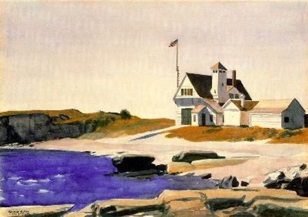 Curator: "The Signal Tower," painted by Maxime Maufra in 1911. A landscape steeped in a very particular kind of light… Editor: It feels like standing on the edge of a dream, doesn't it? All that soft, granular texture, the way the colours blend and blur… like a half-remembered seaside story. Curator: Maufra was a master of plein-air painting, really immersed himself in the landscape. As a committed Republican, Maufra associated with politically engaged artists like Félix Fénéon. The coastlines of Brittany were of political importance at that time. Editor: And you feel that… the solitary structure feels almost stoic against the approaching storm. It is so compelling that these thick swathes of colour create a feeling that there might have had any danger for a human being on this coast line. There is so much loneliness, I feel it in my bones. Curator: Loneliness yes, but there's resilience there, too, perhaps representative of something or someone local. I suppose the signal tower also stands for modernity – at that point, technology was changing the coastal landscape and life of many seaman more dramatically than the climate, or anything else, was. Editor: Absolutely, that quiet defiance is what makes it so touching. You have also reminded me, those curious windows on the structure's face that look like empty eyes—adds an oddly personal feel, and also some surrealism—and connects the manmade with its landscape. Is that deliberate, do you think? Curator: I would say that he invites the public to read more than merely "landscape" into it. There's definitely an open-ended quality. Editor: Right. A landscape of the mind as much as a physical place. Makes me want to grab my paints, my windbreaker and try to paint just to show what is there on this coast! Curator: See? The painting calls us, across time. Makes me reflect on how that coast line have changed over the decades. I believe the place stands up also as a stark comment about humanity as well. Editor: Very powerful, if so... And what else can art achieve after all! I feel enriched, seeing our history is so linked and dense on coasts like this.