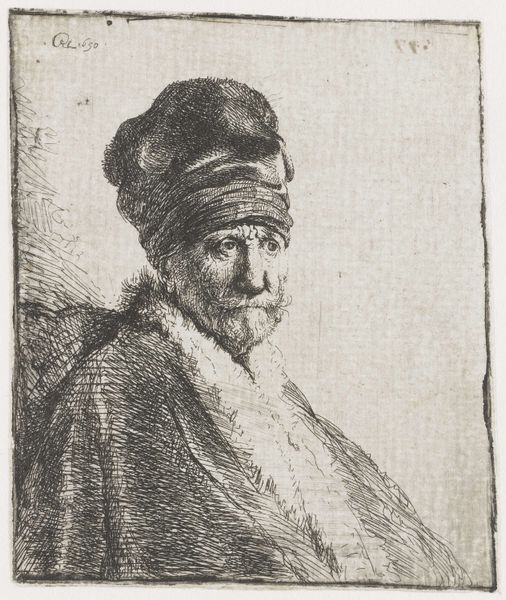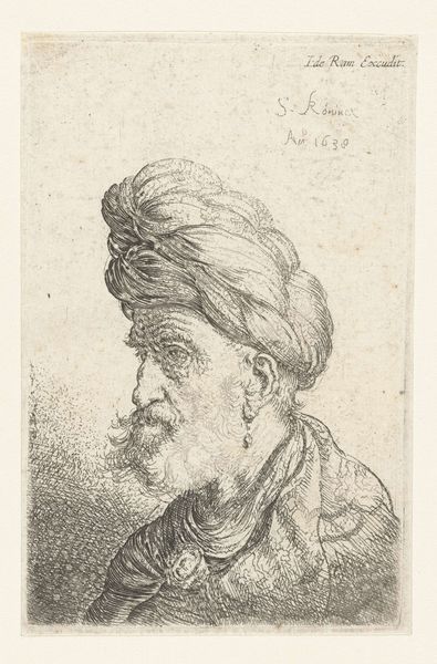 Johan Bülow created this etching, titled "An Oriental," during the late 18th or early 19th century in Denmark. The image presents a man adorned in what was perceived as "Oriental" attire, including a large fur hat with a feather. It reflects the period's fascination with, and often misinformed understanding of, non-European cultures. During this era, Europe saw a surge in artistic and literary works romanticizing the "Orient," frequently exoticizing and stereotyping people from the Middle East and Asia. The artwork likely served as a form of cultural commentary, reflecting the social norms and power dynamics between Europe and the regions it depicted. To understand it fully, we would need to examine travel literature, political documents, and other visual representations of the period. Such research reveals the complex interplay of knowledge, power, and representation that shaped European perceptions of the "Orient." By engaging with such sources, we recognize that art is always rooted in the specific social and institutional contexts of its time.
