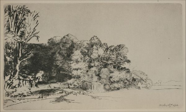 Curator: Welcome. Before us is "Bampton Grange," an undated drawing held in the collection of the Art Institute of Chicago. The medium appears to be primarily graphite and pencil on paper, perhaps with touches of ink to define certain lines. Editor: It feels ephemeral, doesn't it? Like a memory fading at the edges. The light washes across the buildings, almost obscuring them. It's strangely melancholic. Curator: Indeed. The artist uses line economically. Note the layered, almost skeletal structure—the underlying geometry first sketched out, then subtly built upon to define the architectural forms and landscape elements. There’s a sense of deliberate reduction here. Editor: I'm drawn to the textural details suggested with so few marks. The rough stone walls of the grange, for instance. One can imagine the hands that shaped them, the generations that lived within. But also the sheer labor-- how materials shaped both buildings and lives back then. Curator: A compelling point. Observe how the composition adheres to certain classical principles despite its seeming informality. The placement of the main structure creates a focal point, with the receding planes of the road and the suggestion of trees guiding the viewer’s eye through the pictorial space. Editor: And look at those rooflines, cascading one after another, a visual rhythm echoed by the stone work leading towards us. But how does that influence meaning, if at all? Were these simple tenants, a landed family...what defined that labor? Curator: We can only speculate without more contextual data. But certainly the deliberate composition—its blend of precision and suggestive incompleteness— invites us to contemplate not only the scene itself, but also the act of representation. Editor: Precisely. For me, this speaks to the essential role played by materiality. How it determined not just survival, but status too. We're all marked by the materials we come from, that make up our lives, in any case. Curator: So we both bring very separate viewpoints, but appreciate how much is conveyed through the considered execution of materials and skillful formal strategies, even in such a simple work as this. Editor: Yes, definitely more than first meets the eye. A quiet invitation to reflect, as with so much landscape art from that time.