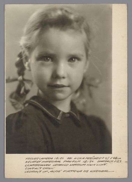 This photograph, *Portret van Isabel Wachenheimer in Lysil*, was made in 1937 by an anonymous artist. The blacks and whites give way to subtle greys; it’s a limited palette, but within it there’s a whole world. I find myself looking at the details, the material aspects of the photograph. There's a softness and subtlety in the way the light falls across the girl's face, her hair. Everything seems to coalesce around the eyes, the hint of a smile. I notice the slightly blurred edges, a certain graininess that speaks to the age of the photograph, a reminder of time passing, and the fragility of memory. There is something so striking in its simplicity. It reminds me a little of the work of someone like Lucian Freud, who had that capacity for capturing the essence of a sitter. But this image is quite different, it reminds us that art embraces ambiguity.