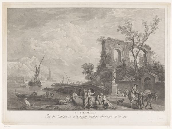 Jean-Baptiste Racine created this print of the area around Naples sometime in the late 18th century, using etching and engraving techniques. The network of fine lines, created through labor-intensive processes, offers a glimpse into the world of 18th-century printmaking. Acid-etched lines create depth, while engraved details add precision. Note the textures of the architecture, foliage, water, and sky. The windmill, prominently placed, reflects the period's reliance on wind power for milling and industry. The human figures underscore the everyday lives and labor intertwined with the landscape. Racine's print invites us to consider the social and technological contexts of its creation. By emphasizing material, making, and context, we see beyond the image, understanding how reproductive technologies were crucial to circulating images of labor and leisure.