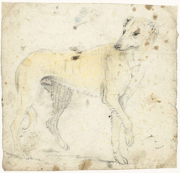 Curator: Take a look at this, a drawing called "A Hound Chasing a Hare," dating back to about 1455, by Benozzo Gozzoli. It's charcoal on paper. Editor: It's simple but strikingly effective. The tension! That lean, eager hound, contrasted with the hare's frantic energy—you can almost feel the desperate pounding of its heart. Curator: Absolutely, and think about what that chase might represent in a broader symbolic sense. We often see hares associated with vulnerability and instinct, while the hound symbolizes pursuit and control. This chase motif is ancient and layered, present in many mythologies. Editor: True, there's that archetypal dynamic, the predator and the prey. The vulnerability is there in that beautiful line depicting the hare’s back leg, extended in full flight. I wonder about Gozzoli's intentions. Was he simply interested in rendering movement, or did he see this chase as an allegory for something larger? It feels existential. Curator: Well, during the Renaissance, artists were intensely interested in the natural world but also used classical stories and motifs to convey deeper meaning. Hunting scenes were, on one hand, displays of power and aristocratic life. On the other, a memento mori. But maybe Gozzoli, working in charcoal, intended for something that seems ephemeral and unfinished—simply wanted to capture a fleeting moment of life and death in play. Editor: I like that interpretation. There's an urgency and a roughness that stops it from being overly precious or symbolic. It suggests the messy reality of the chase. The immediacy, though… how fleeting those few seconds may be, they symbolize everything in this eternal ballet between hunter and prey. Curator: Agreed. And as a study in animal anatomy and motion, it's brilliant. Gozzoli perfectly captures the muscular tension of both creatures. The whole artwork lives with incredible force that takes me by the hand and simply involves me into this old hunt game. Editor: Looking again at that soft tone created with the charcoal, so simple, yet somehow evocative and rich. Such power. A reminder that less can definitely be more. It’s haunting, like a brief glimpse into a primal drama. Curator: Indeed. "A Hound Chasing a Hare," an insightful sketch frozen in time, inviting us to reflect on timeless themes of pursuit and mortality.