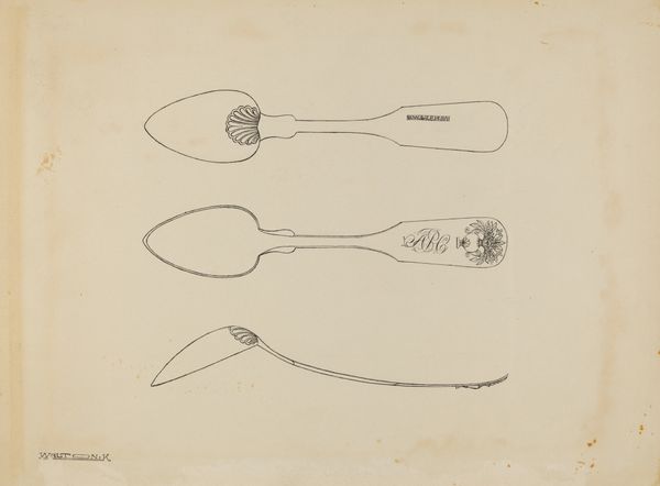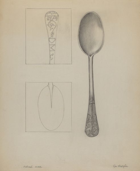 Ludmilla Calderon made this drawing, Silver Spoon, using graphite on paper. The image presents a detailed study of a spoon, accompanied by smaller, less defined sketches. Looking at this work, one is struck by its focus on an everyday object. In many cultures, the silver spoon is a symbol of wealth and privilege, and its inclusion here encourages reflection on social class. The late 19th and early 20th centuries, when Calderon was working, saw significant social changes. Consider how the rise of industrialization impacted class structures and the ways artists engaged with these transformations. To understand this artwork further, research into the socio-economic context of Calderon's life and work would prove invaluable. What institutions played a part in her artistic formation? What was her relationship to wealth? How was she supported? These questions help us move beyond formal appreciation, towards an understanding of the artwork as embedded in social reality.