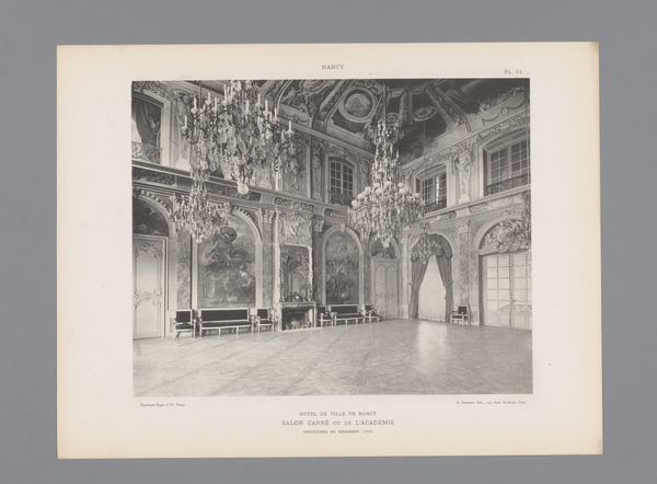 Here we see an anonymous print of the Feestzaal in the stadhuis te Nancy, in which architectural splendor is evident. Note the recurring motif of draped figures, which harks back to classical antiquity. We see them adorning the walls, a subtle echo of the Caryatids of ancient Greece, figures burdened with structural weight, yet transformed into symbols of elegance and support. It evokes a deep-seated desire for order and beauty. Consider the arch, a shape found in triumphal arches of Rome, and the curve is reimagined here in doorways and windows. This arch, symbolic of victory and passage, is multiplied and integrated into the hall, suggesting a space not just for celebration, but for the ceremonial passage of ideas and power. The hall stirs a psychoanalytic resonance, triggering a collective memory of grandeur and authority, reminding us of how spaces shape our perceptions and emotions. The use of recurring motifs and historical allusions suggests the way architecture engages with us on a subconscious level.