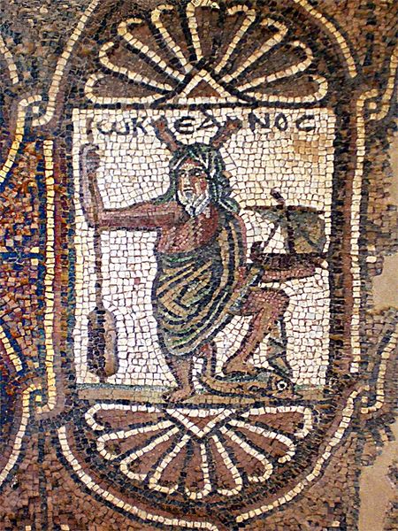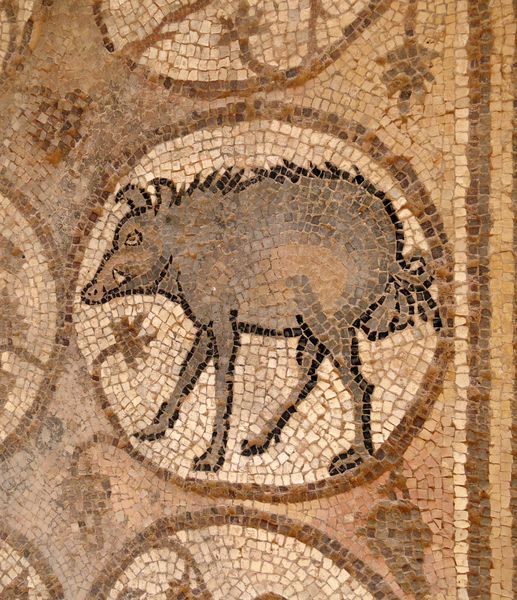This floor mosaic of a bird was created by Byzantine artists. The image presents a fascinating interplay between the constraints of mosaic work and the desire for naturalistic representation. The mosaic is made of small, differently coloured tiles that create a textured surface with distinct visual rhythms. The bird, possibly a rooster, is defined by its intricate arrangement of tesserae in muted earth tones, standing out against the bright white square around it. This contrast, combined with the wave patterns at the bottom and semi-circular pattern above, frames it and invites contemplation. The geometric nature of the mosaic medium imposes a unique abstraction onto the subject. The mosaic encourages a semiotic reading, where the image is understood through a system of signs and symbols: the rooster as a symbol of vigilance, its geometric rendering reflecting the Byzantine era's philosophical interest in bridging the earthly and divine through mathematical harmony. Ultimately, this mosaic embodies the Byzantine aesthetic, where form and content intertwine to create a complex visual and philosophical statement. The mosaic invites us to decode its symbolic language.
