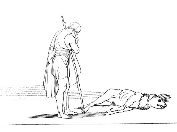 Curator: John Flaxman's "Illustration to Odyssey," created in 1793, presents a scene of stark violence from Homer's epic. Editor: The stark simplicity immediately strikes me. The lack of color really focuses your attention on the dynamism of the composition and those dramatically contorted figures. Curator: Absolutely. Flaxman’s neoclassical style emphasizes line and form, aiming for a universal language accessible to all, which reflects the Enlightenment's belief in reason and clarity. Prints such as this gained immense popularity through wide distribution, fostering an increased appreciation for classical literature among a broad audience. Editor: What is remarkable is how Flaxman distills such a brutal moment to its essential elements. Look at the central figure's musculature. It is pure, raw power. It is fascinating how the almost diagrammatic treatment of light and shadow defines the forms. It calls upon and amplifies the overall emotional impact. Curator: Precisely, he translates the ancient poem into a visual language that aligns with the political and social currents of his time. By stripping away excess detail, he underscores the themes of human suffering and the abuse of power that resonated with the revolutionary sentiments of the late 18th century. Editor: Do you think the figures lack any psychological depth by design? Curator: Their expressiveness lies in the starkness of their posture and the situation more than subtle details of character. Consider this in relation to the Neoclassical rejection of the Rococo and Baroque emotionalism. Here, we're dealing with ideals, broad themes of struggle and human drama intended for instruction as much as they are for mere entertainment. Editor: I concede to your argument that the simplicity is strategically employed to provoke thought rather than emotion. By minimizing the visual noise, Flaxman allows the viewer to directly engage with the core themes. Curator: In conclusion, this illustration represents much more than just a scene from The Odyssey. It encapsulates the artistic, intellectual, and political ideals of a transformative period. Editor: I now appreciate how this emphasis on form transcends its immediate depiction. The universal character gives this print lasting artistic merit.