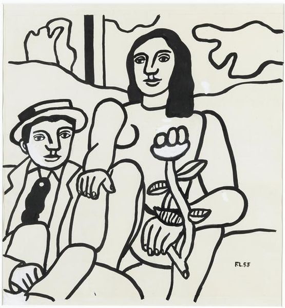 Editor: This is Fernand Léger's, "Study of Women at the plant", done in ink. It's striking how simple the lines are, yet it still manages to feel like a complete image. What stands out to you when you look at this drawing? Curator: Immediately, I see a conscious exploration of the material reality of line itself. The bold, unwavering strokes are not just descriptive, they are the very essence of the work. The artist gives equal weight to depicting both women, plants, and objects of their industrial work. Where others sought pictorial depth, he flattened form and distributed objects, labor, and nature, equally across the space. What kind of paper do you think the artist is working on here and how does the choice affect the reading of the image? Editor: That's fascinating, I hadn't considered that equality. The paper seems quite plain, maybe newsprint? I wonder if that suggests that these figures are "everyday," accessible people. Curator: Exactly. Newsprint would underscore the artwork's grounding in the everyday. The accessibility of both material and subject matter disrupts the traditional hierarchy between "high art" and working-class life. Does the medium influence how you view his subject? Editor: I think it makes me appreciate that Léger is depicting the worker, the labor that these women perform, with dignity by putting their figures in the foreground. It also allows the work to seem "unfinished," because we might see it in our everyday papers, rather than mounted in a gilded frame. Curator: Precisely! The sketch like appearance caused by both the medium and line style is something quite important to keep in mind. This piece, and many of its kind at the time, demanded recognition and an understanding that women are indeed actively participating in building modern society, challenging the traditional roles of women depicted in art. Editor: It’s interesting to think about how the materials themselves carry such a strong message about labor and social commentary. I’ll definitely look at art differently from now on, keeping the materiality and its accessibility front of mind!
