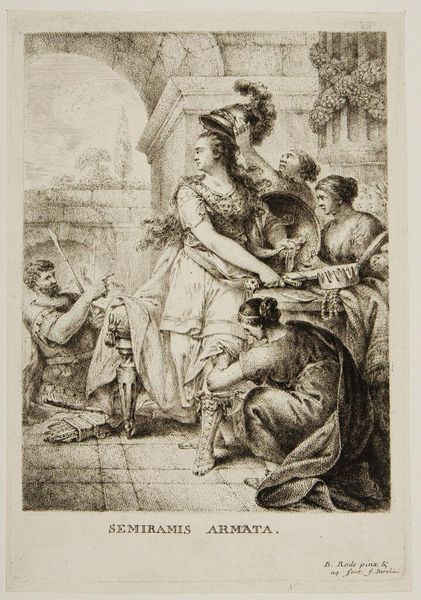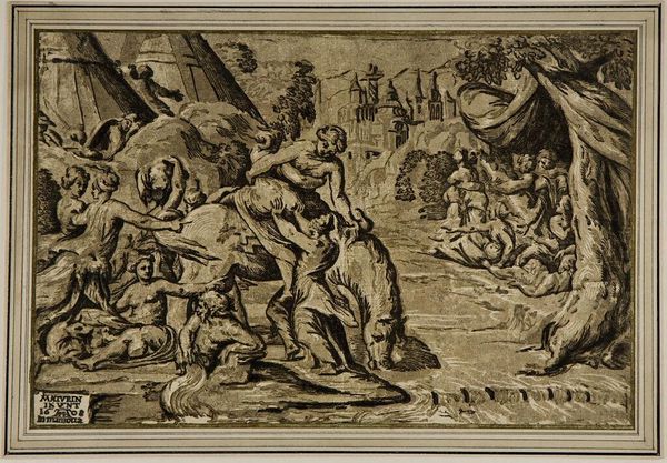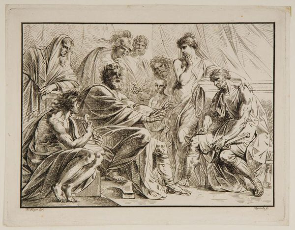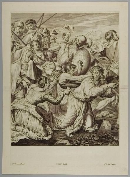 Editor: Jeremias Falck’s "The Adoration of the Shepherds" presents this pivotal biblical scene with striking detail. The shepherds' expressions are really captivating. What symbols stand out to you in this piece? Curator: The lamb, a sacrificial offering, is central, but consider the crumbling architecture. Does it represent the old order giving way? Falck invites us to reflect on the lasting power of faith amid societal change. Editor: That's a compelling point! I hadn’t considered the architecture in that light. Curator: Religious art often encodes messages for later generations. Understanding these symbols enriches our understanding.