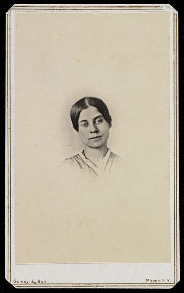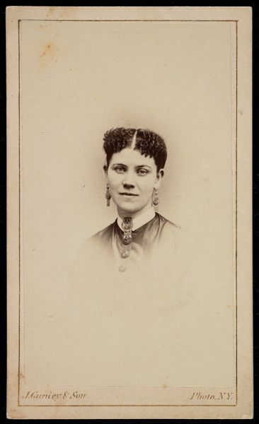 This small photograph shows an unidentified woman, and was produced by Jeremiah Gurney, a prominent New York photographer, using the fashionable carte-de-visite format. Photography democratized portraiture. By the mid-19th century, advancements allowed for mass production of affordable images. Studios like Gurney’s became institutions, shaping visual culture. The carte-de-visite, popular for its size and affordability, fueled a booming market. People from various social strata could now participate in image-making, previously reserved for the elite. This particular portrait, with its simple composition and subject's modest attire, reflects a growing middle-class clientele. But it also prompts us to consider the power dynamics inherent in image-making. Who was this woman? What was her relationship to the photographer and the camera? To understand this image fully, we need to research the history of photography, the development of photographic studios, and the social lives of ordinary Americans during this period. The meaning of this work resides in the network of these institutional and social contexts.