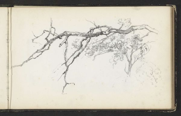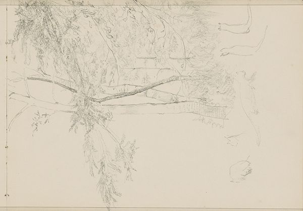 Curator: This is "Landschap," a landscape drawing executed in 1892 by Willem Cornelis Rip. It's a delicate piece, primarily pencil on paper. What's your immediate impression? Editor: Bleak. There's an unrefined rawness that conveys a world of struggle, of a nature almost resisting representation. The loose lines remind me of the political unrest of the time. Curator: It’s fascinating you say that, because, structurally, it reads as a study in tonal variation. Observe the subtle shifts in shading, achieved through delicate hatching. The composition focuses not on specific details but on the interplay of light and shadow. Editor: And yet, aren’t those ‘subtle shifts’ also reflective of the stark realities many faced during this period? Rural life wasn’t some picturesque idyll; it was hard, thankless work. These rough marks perhaps reveal that dissonance? The material constraints influencing the artist, too – this is clearly a study. Curator: Certainly, the materiality speaks to the immediacy of the sketch. Note the economy of line; how much is suggested with so little. Rip masterfully utilizes the negative space, allowing the composition to breathe. One might argue that he found a sense of freedom precisely in this reductive, structured technique. Editor: A sense of freedom for whom? Can we divorce the act of sketching from the societal expectations placed upon landscape artists at the time? It reminds me of art from the early mines, sketching was the art of the engineers documenting labor! The almost brutal quality of these rapid marks can reflect the land being reshaped, in an equally brutal way. Curator: Perhaps it speaks to multiple levels. Through formal reduction and careful composition, it shows us the artistic process, the underlying abstract structures—not just political narratives, but art for its own sake. Editor: Indeed, it is a valuable contribution, serving as an enduring example of art historical landscape that opens doors to various sociopolitical dialogues through the ages. Curator: Ultimately, it stands as an evocative and concise sketch.