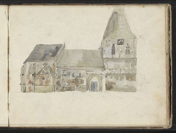 Willem Troost made this watercolour sketch of a building in the Netherlands sometime in the mid-19th century. Its loose, informal style suggests it wasn't intended for public display but rather as a personal record, perhaps made during a trip. At this time, the Netherlands was undergoing rapid urbanization and industrialization, processes that led to both great wealth and increasing inequality. Troost’s choice of subject matter – a modest building, rendered with an emphasis on its worn surfaces – might be read as a quiet commentary on the social changes happening around him. The crumbling facade could symbolize a critique of the neglect of older buildings as cities were modernized. Historians look at municipal archives, period newspapers, and even personal letters to reconstruct the social context that shaped such works of art. Only then can we appreciate how artists like Troost engaged with the world around them, subtly challenging or reinforcing the values of their time.