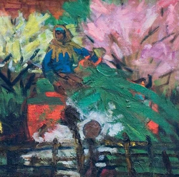 Georges Seurat created this oil on panel sketch, "Study of Figures for La Grande Jatte," as part of his meticulous preparation for his famous painting. The composition strikes you with its arrangement of simplified figures and broad brushstrokes of muted greens, blues and earthy tones. There is no clear form, only a suggestion of it. We can see that the figures are rendered as blocks of colour, almost dissolving into the dappled light of the park setting. Seurat was deeply interested in colour theory and the science of perception. This study reveals his focus on how colours interact and how light can be broken down into its constituent parts. Notice how these colour relationships create a sense of depth and atmosphere even in the absence of sharp details or clear outlines. This reflects Seurat's exploration of optical mixing, where colours blend in the viewer's eye, rather than on the canvas. Ultimately, the radical technique used in this sketch and the final painting destabilized the conventional artistic practices of the time.