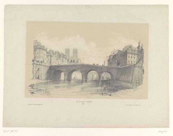 Editor: Here we have "Ponte Nomentano, plate twenty-seven from Ruins of Rome" made around 1798, by M. Dubourg. It's an etching, a print on paper. The scene is just beautiful; the crumbling stone bridge and the water really give it a melancholy feeling. What's your take on it? Curator: Well, I immediately think about the means of production. This is a print, meant to be reproduced. Who was the intended audience, and how would prints like this circulate? Were they catering to the rising middle class interested in experiencing Rome through images, a kind of early mass tourism of the visual kind? Editor: That's a side I had not considered at all. Were these images like souvenirs? Curator: Possibly, yes. But consider the materials themselves. Etching allowed for detail and distribution on paper, far more cheaply than painting, connecting consumption directly to changes in production processes. What effect would making these places reproducible have? Editor: Democratizing art access. I am not sure it is that good though! Did it affect perceptions and artistic value of painting? Did this process somehow cheapen the real experience of standing there? Curator: Those are good points to ponder; Romanticism glorified ruins, but its vision was quickly commodified and consumed. The picturesque became something to possess, visually. Also, did the labor involved in creating numerous prints change Dubourg's own relationship with the scene compared to that of a painter meticulously creating a unique view? Editor: Hmmm, it feels more mass-produced this way. The value lies in the romantic appeal of ruins more than in an emotional moment perhaps. That said I have a deeper appreciation for these romantic landscape prints and their cultural impact now. Thank you. Curator: And I now appreciate the melancholic charm that captivated viewers, and made them feel as though they wanted their own print! A nice turn, thank you!