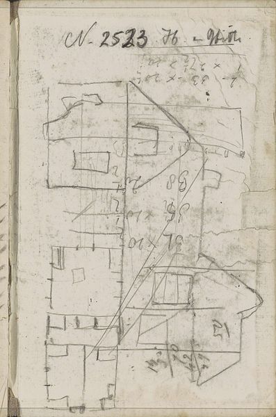 Editor: So, here we have Willem Witsen's "Abklatsch van de krijttekening op pagina 23," a pencil drawing from around 1897 to 1899. It's incredibly faint and sketchy. I'm curious, what elements jump out at you, especially given its seemingly unfinished state? Curator: Well, immediately, I consider the paper itself. Notice how thin it is, almost translucent? This isn't high-end drawing paper. This speaks to the economic realities of artistic production at the time, even for established artists like Witsen. They weren't always working on pristine surfaces; sometimes, it was about utilizing available resources. What does it say to you that this may be a page from a larger sketchbook, given the title? Editor: That it was about process, not product, right? He's capturing an impression. So, does the title "Abklatsch" - roughly "smear" in German, if I remember correctly - refer to his technique here? Was he making copies and studying them, or reusing drawings that were already available and sketching over? Curator: Precisely. The 'smear' highlights the inherent imperfections in reproduction. This invites questions about authenticity and originality, doesn't it? What labor went into the original drawing that this copies? How does this influence our reception of this copy as an artwork? This 'Abklatsch' also implies a detachment from the hand, the supposed hallmark of artistic genius. He is employing reproductive strategies found in commercial production within the 'fine arts', to question these categories. Editor: I never would have considered the materiality of the paper itself or the implications of the copying technique so deeply. So, it becomes less about what's depicted and more about the conditions under which it was created. Curator: Exactly! This invites us to consider how artistic value is assigned, and by whom. It's a humble sketch, perhaps, but rich with social implications and a challenge to notions of artistic creation. Editor: I'll definitely view sketchbooks differently from now on, knowing there's possibly something deeper regarding the material history and means of reproduction.