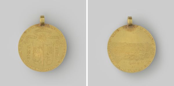Curator: Immediately I feel a kind of warm nostalgia looking at this... It reminds me of a vintage trinket I would have kept from my grandmother. Editor: I can see that. This is a medal, a work by Johannes Cornelis Wienecke commemorating Queen Wilhelmina of the Netherlands' twenty-fifth jubilee. The date etched onto its surface reads 1923. Curator: Twenty-five years on the throne! Quite an achievement. And the artist… I wonder, did he feel pressure capturing her likeness just right? I can almost sense the weight of responsibility in those refined lines. Editor: Considering its function, it’s fascinating to look at the symbols employed. You see Wilhelmina’s profile rendered in sharp relief, almost classical in its style, and then on the reverse, there is this intricately designed heraldic imagery. Curator: Right, like a family crest... Eagles and shields – symbols of power, stability, tradition. All the heavy hitters are present! Editor: Precisely. Medals like these, beyond being commemorative objects, functioned as vehicles of visual propaganda, embedding national identity with potent iconography and imagery. This type of heraldic design spoke to something very deep within the population. Curator: So it’s more than just a shiny object. It’s a story pressed into metal… a miniature monument celebrating both the queen and the enduring spirit of the nation, I suppose. It does exude permanence, doesn’t it? I like imagining all the hands it may have passed through. Editor: A small token capable of holding large collective meaning. And with it now being a part of the Rijksmuseum's collection, we can continue reflecting on our collective memory. Curator: Absolutely. And it prompts you to ask about those past moments. Who were the recipients? How did this feel? And is there more to history beyond portraits? Editor: Exactly, beyond any profile, this is the visual record of history, of collective identity—carefully etched and preserved through time.