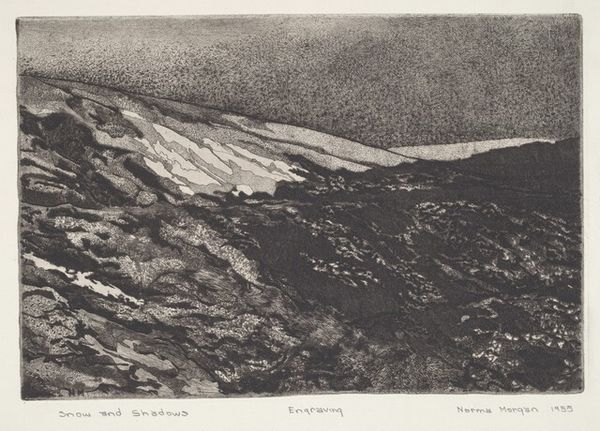 Curator: Here we have Nicholas Roerich's "Water Paternoster," a pencil drawing from 1905. Editor: My initial reaction is of intense cold and isolation. The monochromatic palette really emphasizes the harshness of a winter landscape. The textures are remarkable too. Curator: It's interesting that you pick up on the isolation. Roerich’s work often grapples with the themes of spirituality and humanity's connection to nature, but also societal transformation, reflecting the social and political anxieties of Russia at the turn of the century. "Water Paternoster," whose location is unfortunately recorded as destroyed, demonstrates Roerich’s ability to depict grandeur within an understated drawing. Editor: Seeing that figure nestled in the rocks changes the isolation somewhat; are they meant to embody resilience within a landscape that could care less about them? Or are they dwarfed by the scene? And does their action of observation invite or reject ours? I’m curious what role that single human figure is meant to play in such a scene, and in that context the piece’s destruction seems incredibly violent, almost symbolically representative of the obliteration of such fragile things. Curator: Perhaps they were meant to engage a dialogue between humankind and our environment, where this visual exchange fostered social evolution through an emotional connection. It's easy to forget the cultural turmoil happening at the time. Russia was on the verge of revolution. Editor: I think Roerich highlights how individual experiences within larger social upheavals become both deeply personal and universal. Even his artistic style plays on tension. He seems interested in depicting realism through line, light, and shadow while also maintaining some degree of fantasy in it all. Curator: Absolutely, that liminal space between realistic depiction and something else… Roerich found a way to capture both the immediacy of the landscape and hint at its greater social importance. His unique perspective encouraged his viewers to grapple with cultural heritage and imagine the future of art. Editor: I think looking at Roerich's drawing through that lens really illuminates the anxieties of the time. What at first seems like a simple, bleak landscape becomes this potent symbol of societal struggle. Curator: Agreed. It's a haunting reminder of the power of art to capture and convey complex emotions within broader cultural movements. Editor: And of the fragile, transient nature of artistic and human endeavors.