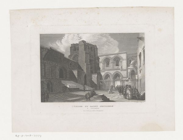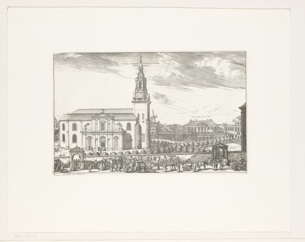 Editor: Here we have Jean-Baptiste Arnout's engraving, "View of the Church of Notre-Dame du Val-de-Grâce in Paris," dating from around 1820. I'm immediately struck by how it captures a specific place, but also evokes a feeling of timelessness. What stands out to you in this piece? Curator: The weight of history, undoubtedly. Beyond simply depicting the Val-de-Grâce, Arnout’s engraving is imbued with the echoes of power, faith, and the French identity. Look at how the dome commands the composition – it's a clear visual statement of the Church's enduring presence, wouldn’t you agree? But note also how human figures almost fade into the background, dwarfed by architectural magnificence. Editor: Absolutely, there’s definitely a contrast between the monumentality of the church and the people in the street. Is it the church meant to humble the people in some way? Curator: It makes you consider that the architecture is far more than just bricks and mortar, isn't it? Churches have frequently served as powerful metaphors throughout human history, for protection, spiritual guidance, the symbolic representation of collective ideals. Consider how the Romantic era sought refuge in history and spiritual grandeur amid social upheaval, the people may appear diminished here, yet the architectural forms provide emotional sustenance. Editor: So, the architecture here almost functions as a kind of cultural anchor in turbulent times? Curator: Precisely! Arnout uses the imagery of the church not only to document its existence but also to subtly imply these enduring social values, suggesting a continuity and perhaps even a quiet reassurance, even during periods of immense change. It serves as a poignant reminder that art immortalizes a cultural dialogue long after its creation. Editor: That’s given me a lot to think about. I initially saw a simple cityscape, but I'm now aware of how Arnout embedded the architectural image with a cultural symbolism that speaks across generations. Curator: Indeed. Works of art like these encourage us to see, to reflect, and to find within familiar images a profound conversation.