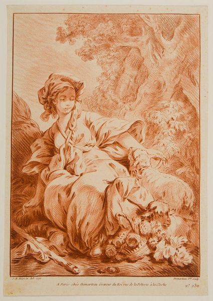 Curator: Holzer's Virgin Annunciate is rendered entirely in sanguine, giving the scene a warm, almost dreamlike quality. Editor: The earth-toned chalk emphasizes the materiality of the paper itself, focusing on the labor that was involved in producing this image. Curator: Yes, and that choice amplifies the emotional weight of the Annunciation, doesn’t it? The dove, though absent, is implied by the cherubic presence, suggesting divine intervention. Editor: And I see the fine hatch marks indicating a system of labor. I'm curious about the economic context, the markets that supported Holzer's work. Curator: It’s about capturing a moment of profound spiritual transformation. Consider Mary's gesture, hand to heart, a universal symbol of acceptance and humility. Editor: I wonder where Holzer sourced his materials. What kind of chalk, and where did it come from? These details provide a tangible connection to his practice. Curator: Holzer skillfully blends the sacred with the everyday, making the divine accessible. Editor: Absolutely, but also grounding the divine in material realities. Thanks for sharing your insights. Curator: Thank you; it’s always a pleasure to explore the interplay between the earthly and the spiritual.