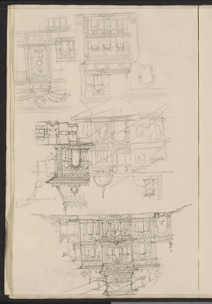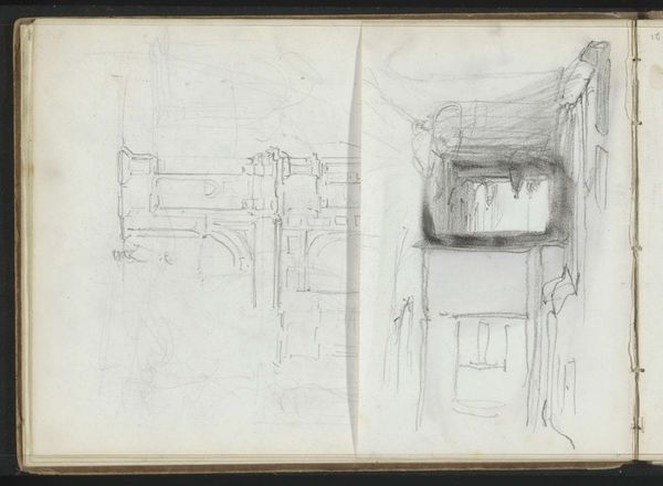 Curator: Welcome. We’re standing before Carel Adolph Lion Cachet's "Interior with Paneling, a Sofa, and Fireplace," a pencil drawing created around 1903-1904. Editor: Immediately, the lack of precision strikes me. It’s almost like looking at architectural aspirations caught mid-thought, or even some private intimate desire visualized within one's four walls. Curator: Cachet was working during a period of rapid industrialization and urbanization, when the design and decoration of domestic interiors became increasingly important as a means of expressing personal identity and social status. Modernism in full bloom! This drawing showcases architectural and decorative elements prevalent at the time. Editor: And the way the lines scratch at the paper...there's a definite Modernist rejection of classical beauty standards here. The interior shown lacks the soft touch one would assume of a well lived in place: it seems almost like an emotionless design proposal. It has no identity of its own. Do you think it reflects anxiety about the changing roles and relationships produced by Modernity? Curator: Very possibly! It’s crucial to remember that the decorative arts—the creation of spaces people inhabit—have long been associated with gender, especially femininity and domesticity. Cachet seems engaged with similar conversations and actively tries to explore an idea of place outside of old definitions. I can not ignore the social context from which these walls emerge, the art is meant to create belonging and instead gives off emptiness. Editor: Precisely, and let’s not forget about the social and economic disparities reflected, or rather hidden, within such spaces. This drawing captures a very specific type of interior, a privilege unavailable to many, then as now. The stark lines feel not just aesthetic but indicative of those divides. Even the architectural and geometric are political here! Curator: The museum context adds another layer. Exhibiting this drawing invites viewers to contemplate the values and aspirations of the period, the changing meanings of home and privacy, and the role that design plays in shaping our identities and social relations. Editor: I wonder how many visitors, particularly those from marginalized communities, feel represented or alienated by these interiors...or perhaps even activated! I certainly hope this artwork starts important conversations! Curator: It certainly is a great conversation starter. Seeing art with an eye for its history reminds me how crucial these conversations really are. Editor: I’ll say! It brings to question everything, but perhaps it helps rewrite definitions and meanings, and in so doing reconfigure belonging in this very museum!
