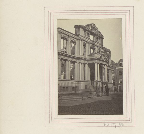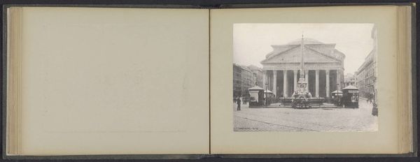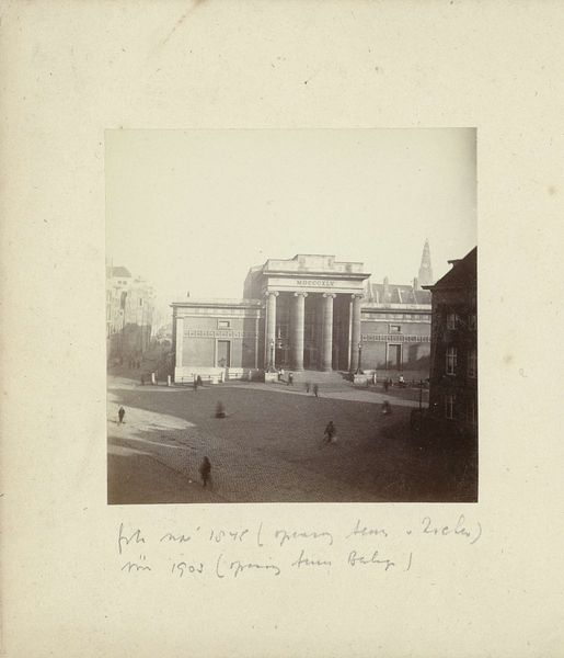 This gelatin silver print, "Achterzijde van The Art Building op het terrein van de wereldtentoonstelling in St. Louis," was made by Jan Schüller in 1904. What strikes me is its subtle palette, a symphony of muted tones achieved with a careful photographic process. It feels so intuitive, like the photograph has slowly revealed itself, emerging from the chemicals and light, as if by accident. The photograph has an intriguing surface; you can almost feel the texture of the gelatin silver. The image's tones create an ethereal quality, as if the building is fading into a sepia-toned dream. The print’s surface quality creates a sense of distance, like a memory half-forgotten. Take a look at the way the light hits the columns. See how that soft glow gives the building a sense of depth? It reminds me a little of an Atget photograph, with its quiet observation of the modern world. The photograph doesn’t try to grab your attention. It simply invites you to look, to observe, and to feel the weight of history.