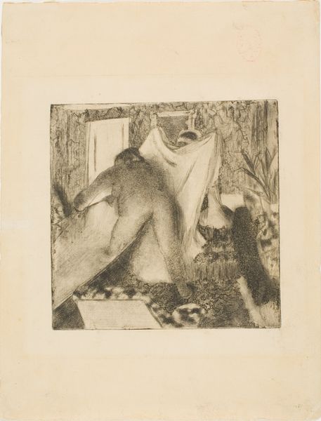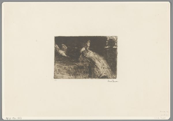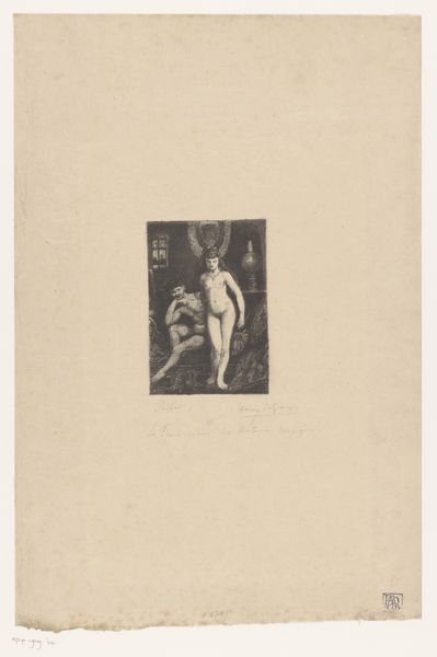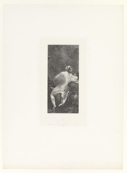 Editor: This engraving, "Kruisafname," created sometime between 1806 and 1860 by Antoine François Gelée, is striking in its dramatic use of light and shadow. The dark tones really create a somber and intense mood. What catches your eye in terms of its composition? Curator: Indeed, the chiaroscuro is paramount. Notice how the stark contrast isn’t merely illustrative; it’s structural. It guides the viewer's eye, creating a focal point around Christ's body. The diagonal of the cross reinforces a dynamic instability, characteristic of Romanticism’s break from Neoclassical serenity. Editor: So, it’s more than just aesthetics? Curator: Precisely. The dramatic lighting dissects and highlights key components such as his torso which contributes directly to its narrative and the implied movement of the scene. Think about the use of line. How does the engraver’s mark-making contribute to the overall affective quality? Editor: I see what you mean; the varying line weights definitely intensify certain emotions. The strong dark lines really add to the tragic feel, versus delicate thin ones. Is it possible to focus just on this kind of purely aesthetic examination to engage with this work, versus engaging with its religious meaning? Curator: Absolutely. Formalism encourages us to isolate the visual elements. By suspending immediate recourse to symbolic interpretation, the structural integrity becomes profoundly apparent, rendering an artwork autonomous in its power. That starkness emphasizes the emotional power in an image completely separate from narrative considerations. What do you take away from this understanding? Editor: Thinking about it now, appreciating it as a structure first really adds a dimension. Now I can see other compositions this same method might apply to! Curator: And, remember that even absence plays a role.