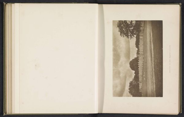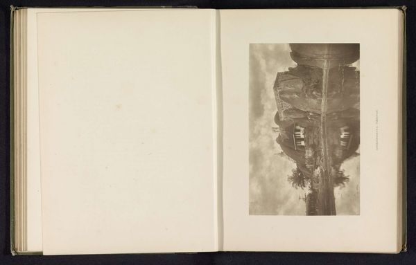 Henry William Cave captured this black and white photograph, "Returning from Polonnaruwa at eventide". The image, with its restricted tonal range, conveys a stillness that evokes a sense of calm reflection. The composition divides the scene into three horizontal bands. The sky, filled with cloud formations, sits above a dark land mass, which dominates the composition. In the middle ground there is a sliver of light creating a horizon line, the artist thereby creates depth. This compositional structure is reminiscent of 19th-century landscape painting, yet Cave’s photograph reduces these elements to their most basic forms. Through the absence of vivid color and sharp detail, the photograph encourages a focus on form and structure. The heavy clouds and shadowy landforms merge, inviting us to contemplate the balance between presence and absence. This image provides a quiet yet potent reflection on the interplay between light, form, and the viewer's perception.