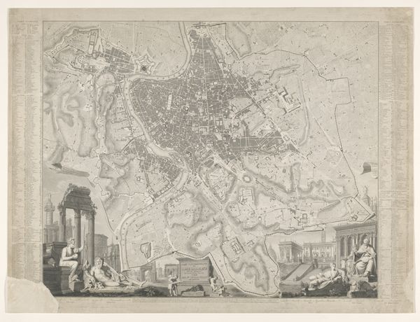 Curator: This work, presently housed at the Rijksmuseum, is titled "Vestingplattegrond van Charleroi." Created between 1709 and 1712, this print offers an exquisitely detailed view of the city of Charleroi. Editor: Immediately striking is the visual harmony, though it's tinged with the rigid order imposed upon the land. The lines of fortification cut aggressively into what appears to be a naturally flowing landscape. It suggests a tense negotiation between human ambition and nature’s contours. Curator: It's fascinating how these city plans can tell stories of power. These weren’t just geographical documents; they were statements of military might and strategic thinking. Fortification transformed the visual grammar of the landscape, signaling the ever-present potential for conflict. The visual emphasis on controlled space mirrors the socio-political strategies of the time. Editor: Absolutely. The star-shaped citadel dominating the plan—a classic Vauban design—symbolizes order and control, but also a very specific vision of statecraft. Think of the people who lived within and around those fortifications. For whom was this control exerted and at what cost? And that carefully crafted aesthetic...what did it communicate to allies and enemies alike? Curator: I’m also interested in how printmaking allows for the democratization of such powerful imagery. This image isn’t just for military engineers or political elites; its reproducibility allowed for a broader dissemination of information, and potentially, ideology. We might also read into the use of linear, rigid form—it's not just about efficient defense; it’s an aesthetic choice meant to inspire a certain psychology. Editor: I agree. The seemingly neutral, objective rendering masks underlying political ambitions. By focusing on the 'objective' depiction of space, it subtly naturalizes power structures. This plan presents Charleroi not just as a place, but as a testament to the triumph of human engineering. Curator: Looking at this piece, I’m struck by the complex interplay between beauty and utility. It exemplifies how aesthetic choices were used to legitimize political dominance. It encourages reflection about how space can be wielded to embody ideological frameworks. Editor: For me, the artwork’s real power resides in its capacity to unveil the socio-political tensions of its time. It's a reminder that every line drawn, every angle measured, carries a weight far beyond mere geographical representation.