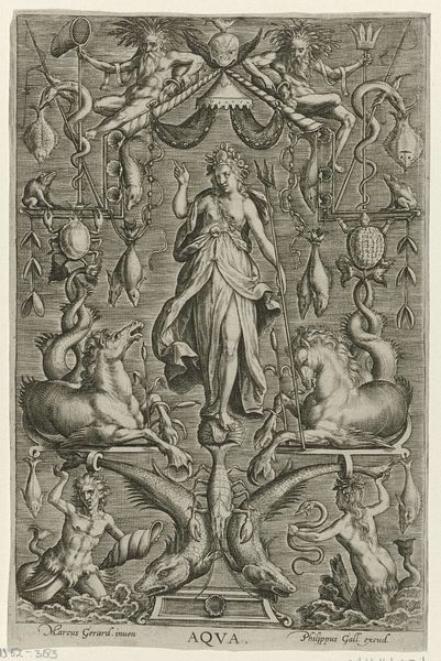Jean Lepautre created this panel in omlijsting engraving, brimming with symbols that echo across time. Note the serene bust at the panel's heart, flanked by playful putti. Below, two figures recline, framing a grotesque mask within a laurel wreath. This wreath, a classical symbol of victory and honor, finds its roots in ancient Greece and Rome, adorning emperors and athletes alike. Yet, its cyclical form also speaks to life's endless return, a concept mirrored in the mask – perhaps a theatrical emblem or a guardian figure, warding off ill fortune with its exaggerated features. The mask-like face, a motif that surfaces from antiquity to commedia dell'arte, reminds us that we see a psychological link to primal fears and the subconscious. Consider how these elements engage us, stirring emotions tied to triumph, protection, and the enigmatic dance between joy and sorrow. Such is the enduring power of symbols, continually reborn, their meanings shaped by the currents of culture and the depths of our shared psyche.