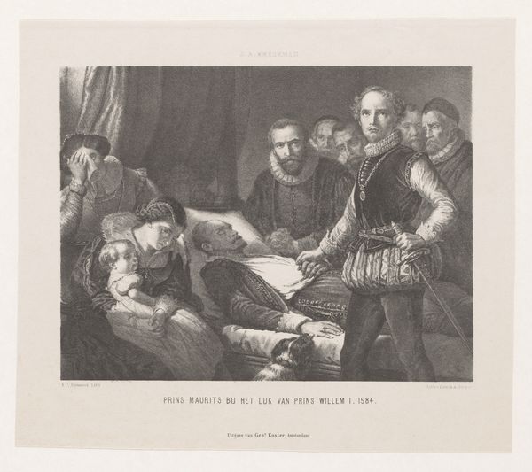 Curator: Standing before us, we see an engraving produced by Jean Baptiste Alfred Cornilliet in 1851 after Rembrandt's famed painting "The Anatomy Lesson of Dr. Nicolaes Tulp." The print, now housed here at the Rijksmuseum, captures a pivotal moment in medical history and its representation. Editor: It's striking how Cornilliet, through engraving, distills that original composition into something so stark. The dramatic lighting emphasizes the coldness of the scene—the lifeless body on the table against those rather severe, observant faces. Curator: Indeed. Think of the processes involved. The engraver had to translate paint and brushstrokes into a language of lines and textures, carving the image into a metal plate to then produce multiple impressions. It's a layered act of reproduction, each step altering the work's inherent meaning. This print allowed for broader dissemination of medical knowledge but also replicated certain social structures. Editor: Absolutely. And Rembrandt’s painting itself, and consequently Cornilliet’s print, can be viewed as a visual assertion of power. Note who is centered—Dr. Tulp— and how he holds court, dissecting the body while the other doctors look on with fascination. The deceased is treated less as a person, and more as a text to be interpreted. What was the status of this body? Unclaimed? Criminal? Whose body gets used for teaching in the history of medicine is no small question. Curator: An excellent point. And we shouldn’t ignore the consumer aspect here. Who would purchase and display such a print? Likely other medical professionals, who, through owning such a depiction, publicly aligned themselves with intellectual pursuits and emergent scientific disciplines, thus bolstering their standing. Editor: I think considering this piece now reminds us how scientific and medical knowledge— and its visual representation—are deeply embedded in issues of class, race, and access. Curator: So, by studying the materiality of this engraving and understanding its relationship to the larger societal conditions that birthed it, we start to ask critical questions about access to knowledge and the distribution of power. Editor: Right. It calls us to ask— who benefits, and who is exploited when images like these are circulated? Curator: Precisely, a reproduction which becomes an important historical document in its own right. Editor: I will now leave thinking of those relations in ways that impact current practice, too.