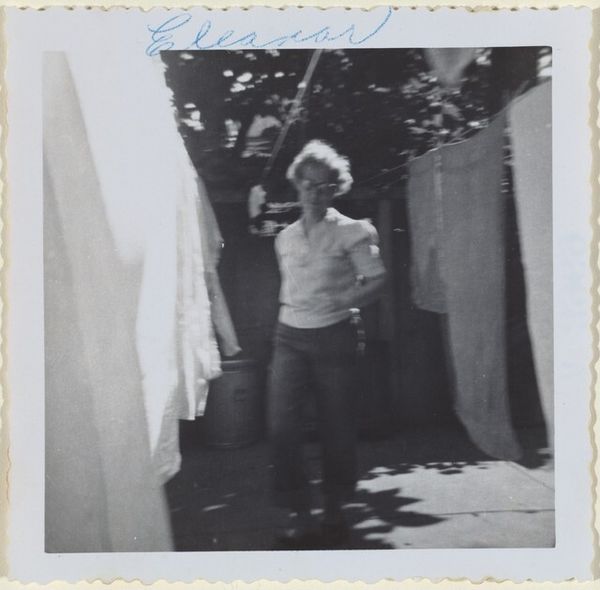 This photograph, "Dorie May 1956," captures a moment frozen in time by an anonymous artist. The palette is grayscale, full of subtle shifts from light to dark, where the artist is working with tone instead of colour, which I always find exciting. What strikes me is the casualness, the fleeting quality of the moment. Dorie, turned away from us, her hand on her hip, seems caught in thought, in the midst of a domestic space. The blurriness adds to this feeling of immediacy. Look at the way the light catches on the curve of her arm, a soft, diffused glow. The artist uses light and shadow like brushstrokes. It's almost sculptural, this way of building form with tone. This piece reminds me of the work of Emmet Gowin, with his intimate portraits of family. Both artists share a willingness to embrace the imperfections, the quirks, the messy beauty of everyday life. Art isn't about perfection, it's about honesty, and this photograph has that in spades.