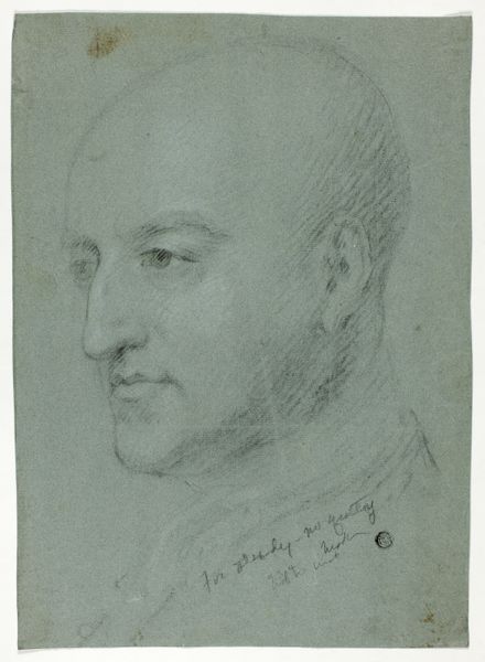 Editor: So, this is Wilhelm Marstrand's "Portræt af Christian Waagepetersen," a pencil drawing from between 1825 and 1834. There's something very direct and honest about it. What stands out to you when you look at this piece? Curator: The immediate impression is of a man caught in a specific moment. Look closely at how the shading defines his features - the careful attention to the eyes, the subtle modeling of the cheekbones. This isn't just a portrait; it’s an attempt to capture the very essence of Waagepetersen. Do you get a sense of his social standing through the details of the drawing? Editor: Well, you can tell he's someone of importance, definitely not a commoner. Is that just my modern reading of it though, or would an audience back then pick up on that too? Curator: Absolutely, this was crafted for a specific audience, steeped in visual cues related to social hierarchy. Details, such as the faint hint of a coat, positioned just so, signify status. More than that, the gaze itself seems to convey authority and perhaps even a shrewd intellect. It seems Marstrand is offering insight into Waagepetersen’s role as a vinhandler, etatsråd, hofagent through this lens. Consider: What do the unexaggerated details convey to us now? Editor: I see what you mean about his expression. It makes you wonder what he’s thinking. It's interesting to see how something so simple can tell you so much. Curator: Indeed. It speaks to how cultural memory is encoded within images and the choices artists make, and that transcends time, doesn't it? Editor: Absolutely! It really changes how I see portraits now.