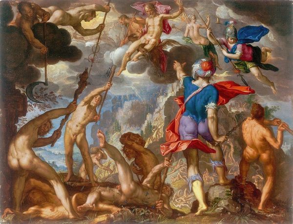 Sebastiano Ricci painted "The Fall of the Rebel Angels," capturing a pivotal moment of cosmic conflict. We see Michael, the archangel, sword raised, shield gleaming, casting down the rebellious angels from heaven. The act of “falling,” here, is not merely physical; it's symbolic of moral decay, a theme that echoes through art history, from classical depictions of Icarus plummeting from the sky to more contemporary portrayals of societal collapse. Consider, for instance, the repeated motif of a "fall from grace," a narrative imbued with psychological undertones reflecting humanity's susceptibility to temptation and the consequences of hubris. The sword as an instrument of divine justice is also a recurring image. This resonates with the power of authority and the consequences of challenging established order, a symbolic representation of power dynamics. The symbols are neither linear nor fixed; they resurface, evolve, and take on new meanings in different historical contexts.