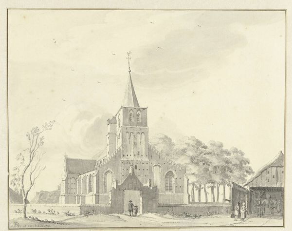 Curator: Here we have Hendrik Spilman’s "View of the Church at Purmerend," created in 1757. It's an engraving, currently residing here at the Rijksmuseum. Editor: My first thought is one of precision and care. The fine lines used to create the building give it such depth; the detail is quite remarkable. The neutral palette creates a sense of serenity too. Curator: That serenity speaks to the spiritual power that buildings like these held – not just as places of worship, but also as symbolic anchors for the community, representing stability in an ever-changing world. Churches in the Baroque era signified power, faith and God. The impressive scale reaching for the heavens reflects humanity's relationship with the divine, attempting to touch God's realm on Earth. Editor: Indeed. Considering it's an engraving, I'm curious about the labor involved. How many plates, the time etched for the work, and what the distribution and market for the prints would have looked like at that time. Was Spilman self-funded or commissioned for his efforts? Curator: That's a really pertinent point. The prints served a purpose of spreading the imagery and awareness of Baroque symbolism – enabling these symbols and values to pervade society more deeply, solidifying belief and structure within society through architecture and image. Editor: And how easily were these distributed, reproduced, and sold? Did Spilman profit greatly, or was this more civic-minded than commercial? Thinking of the social impact alongside the visual appeal really brings this piece alive. Curator: Absolutely. Spilman's "View of the Church" offers us not just a depiction of a physical space, but also a glimpse into the cultural and spiritual mindset of its time. Editor: It serves to remind us of how the materiality of a piece affects its accessibility, and the subsequent distribution impacts the socio-political fabric of a period. Art, even a print of a church, always exists within its wider societal web.