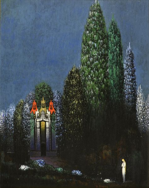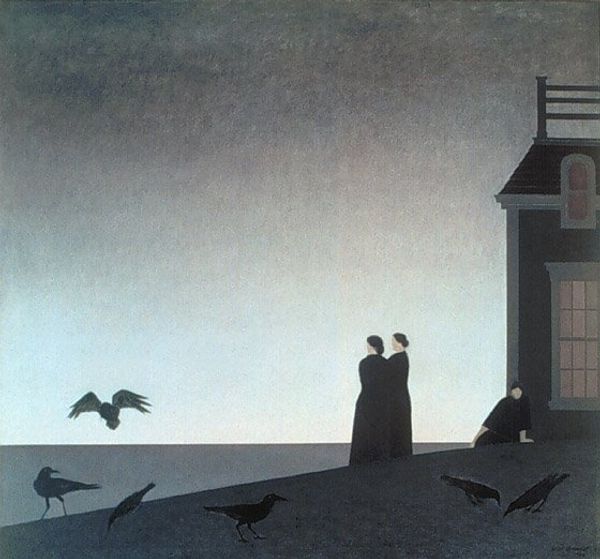 Henri Rousseau painted "Carnival Evening" with oil on canvas in an uncertain year, sometime before his death in 1910. Rousseau, a self-taught artist, often depicted dreamlike scenes, reflecting his own imaginative world. In this work, the figures in Pierrot and Columbine costumes, characters from the Italian commedia dell'arte, stand out against a mysterious nocturnal landscape. Carnival, a festival of role reversal, provided a space where social norms could be playfully subverted. The painting evokes a sense of quiet melancholy. The stark, leafless trees and the eerie moonlight create a somber backdrop, contrasting with the festive attire of the figures. It suggests a world where revelry is tempered by introspection. Rousseau developed an alternative narrative, transforming the traditional symbolism associated with costume into a scene of personal reflection. "Carnival Evening" quietly captures the personal emotions of identity and experience in the broader societal landscape of early 20th-century France.