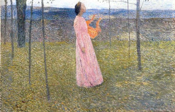 Curator: Standing before us is "Under Birches," a 1904 oil-on-canvas work by Igor Grabar. It’s an interesting example of Russian Impressionism, painted en plein air. Editor: Wow. It feels like staring into a snow globe – a really elegant, muted snow globe. The whole thing shimmers, like light is refracting off of everything. Curator: It's the brushwork, isn't it? The way he applies paint in these short, broken strokes to capture the fleeting effects of light and atmosphere. You see how the figures almost dissolve into the landscape. Editor: They're kind of ghostly, especially the two in the back. Are they even there, or are they impressions? And everyone's wearing these dazzling white outfits. Is this some sort of summer ritual, or maybe the height of summer fashion for country folk at that time? It feels dreamy. Curator: Those are actually smocks. Grabar painted this while visiting his family estate. He likely depicted relatives relaxing on the grounds. These garments served a practical purpose; smocks shielded them from the harsh sunlight, reflecting socio-economic realities and values around labor at the turn of the century. Editor: Right, there’s a story. But, looking at it now, my mind resists thinking about summer labor. The loose dabs of white, ochre, and green seem to mimic not just light but time itself blurring. There is something transcendent that suggests that what’s at play here goes beyond plain appearances. Curator: Precisely! What you pick up intuitively – that dreamlike quality – that really touches on one aspect that made Grabar important. As a leading figure of the Union of Russian Artists, he contributed to establishing Impressionism within Russia's unique socio-political and aesthetic context. He actively looked to modernize the traditional landscape genre. Editor: He's successful here, in my opinion. I'll probably think about birch trees differently now. Curator: As will I. Viewing this work helps me reflect upon not only Russia’s aesthetic landscape but also how everyday realities shaped artists and artistic expression.