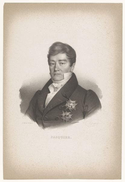 Editor: So, this is Antoine Maurin's "Portret van Robert Surcouf," dating from between 1835 and 1851. It's an engraving, and the detail is incredible. It strikes me as a very formal and imposing portrait. What can you tell me about what you see in this piece? Curator: This image vibrates with potent symbolism. Beyond the direct depiction of Surcouf, consider the deeper cultural memory at play. Engravings such as these helped cement a visual record for public consumption. What does his gaze convey to you? What values might a society project onto an image of such a man? Editor: I suppose the direct gaze suggests honesty and integrity. Maybe courage? And I’m guessing that the medal signifies his achievements… like valor or service? Curator: Exactly! Medals are more than ornamentation; they're condensed narratives of merit, sparking admiration and signaling social hierarchy. The *print* medium is particularly interesting here. It invites wider participation, shaping common perceptions. Notice how the soft gradations lend themselves to notions of idealization, yet the sharp lines suggest a certain... resolve? Does that interplay spark ideas about how society creates its heroes? Editor: I see what you mean. It's like they are both solidifying Surcouf's legacy, but also molding it to fit societal expectations. It's more than just a portrait, it is like cultural coding. Curator: Precisely! Through images, societies transmit powerful beliefs across generations, shaping understanding and defining roles. We have coded memories in our minds about leadership, haven't we? What does it make you think about with today’s social media, its proliferation of images? Editor: It is everywhere today! So it has the same intention… It plants ideas that affect our feelings. I’ll never look at portraits the same way!