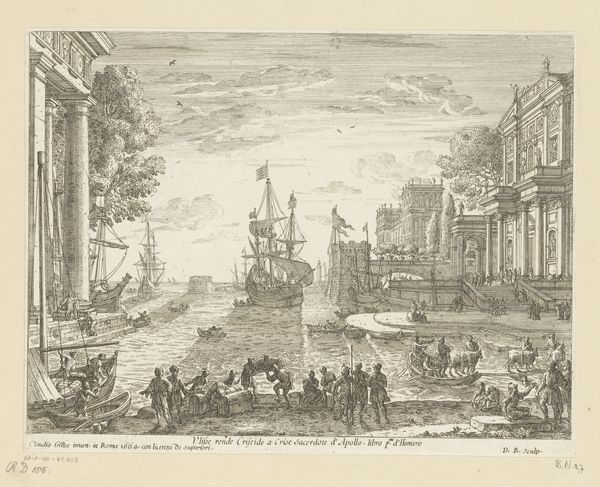 Curator: This print, dating from between 1704 and 1724, is titled "Gezicht op het Forum Romanum," or "View of the Roman Forum," rendered by an anonymous artist with the technique of engraving. Editor: The scene is teeming, bustling with figures large and small. It's hard to say, but the vast space is imbued with a real sense of decline, almost like looking at ruins inhabited, not preserved. Curator: Precisely. The very title "Campo Vaccino"—literally "cow field"—hints at this decay. Despite the noble ruins of temples and public buildings depicted here, for centuries the Roman Forum was actually used as a pasture and a marketplace. What's being conveyed is that contrast between its glorious past and its rather mundane present. Editor: So, we're not just seeing a landscape, but a kind of commentary on power, transformation, even erasure. I wonder what audiences at the time made of viewing a former center of imperial strength reduced to something quite ordinary? It’s like history itself is flattened, isn't it? This teeming marketplace dominating the noble ruins. Curator: Consider also the role of Amsterdam and the engraver in mediating this image. This isn't necessarily how a Roman might have viewed or wanted others to view Rome. There’s a level of social critique. The artist is looking at Rome from a distinctly northern European, probably Protestant, perspective. What did the image represent, perhaps even say about Dutch identity in the Baroque era? Editor: It speaks volumes about the act of witnessing itself. This image becomes not only about Rome, but also about who is looking, who gets to represent this historical and cultural decline, and, crucially, who benefits from circulating it. The casual inclusion of people amidst grand monuments says something about whose histories are valued. Curator: It is important to remember art exists, and can only be interpreted, within its total milieu. Editor: Right, it invites us to question who decides what is seen, remembered, and forgotten in the narratives we tell ourselves about the past.