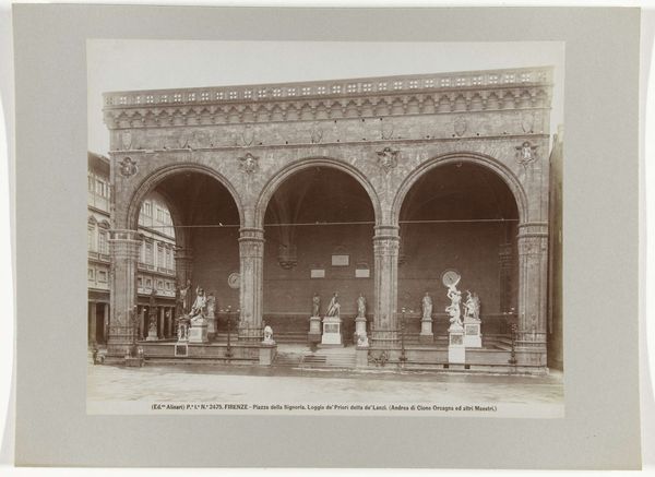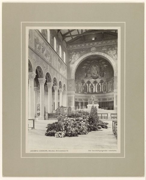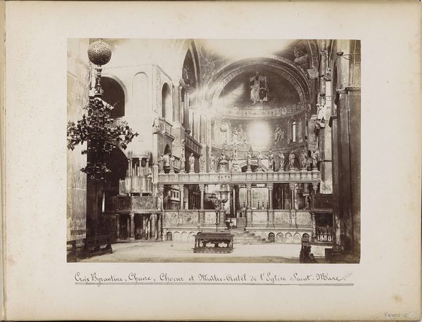 Editor: This photograph, titled "Interieur van de San Marco, Venetië," was taken by Fratelli Alinari, circa 1880-1895. It's a gelatin silver print, so the tonal range is quite remarkable. The architecture almost seems to breathe. How would you interpret the formal elements at play here? Curator: The image demonstrates a meticulous engagement with geometric form. Notice the calculated use of line and the contrasting light and shadow, defining architectural mass. Observe how the composition orchestrates receding planes. This photographic rendering of San Marco’s interior isn't merely representational, but rather a study in spatial articulation. Editor: It’s almost like a stage set. The perspective draws the eye in but also flattens the image. Is there significance in the choice to prioritize form over depth? Curator: Consider the basilica’s design principles. The geometry reinforces a certain visual logic. This could lead us to discuss structuralism, seeing the photo as revealing the underlying structures and codes of how we understand space and architectural form. Would you agree? Editor: I do. And, in that sense, the image seems very modern for its time. Almost an exercise in pure form, regardless of subject. Curator: Precisely. This photograph operates as a self-contained system, emphasizing the structural relationships within the frame. We see a dialogue between shapes and tones that transcends mere documentation. Editor: That's helpful to consider. It reframes the work in my mind. Curator: I’m pleased that this analysis gave us fresh perspectives on visual interpretation.